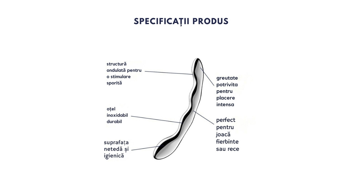 Forma sa sculptata pentru precizie prezinta o textura in valuri hipnotica, ce maseaza peretii vaginali si punctul G cu o intensitate de neegalat la fiecare trecere. Suprafata ultra-fina si non-poroasa nu este doar o declaratie de estetica moderna, ci si o siguranta a igienei absolute, fiind extrem de usor de sterilizat. Designul ergonomic si greutatea specifica a otelului ofera o senzatie de plenitudine si control, transformand explorarea senzoriala intr-un ritual elegant. Este mai mult decat un accesoriu; este o invitatie la a descoperi cum temperatura si textura pot crea momente de extaz profund si autentic.