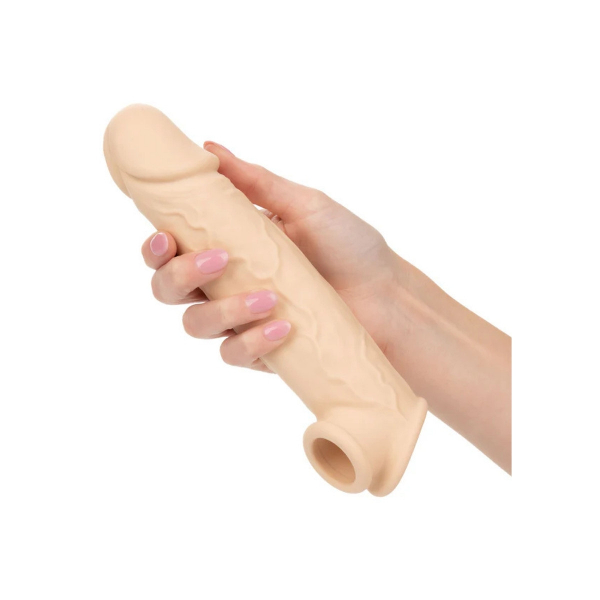 Pentru a pune extensia, ruleaza usor marginile sau intinde deschiderea si insereaza penisul aflat in stare de erectie partiala sau totala. Pozitioneaza inelul de sustinere in spatele scrotului pentru o fixare sigura. Ajusteaza extensia astfel incat sa nu existe goluri de aer. Dupa utilizare, scoate produsul cu grija si curata-l imediat cu apa calduta si un sapun antibacterian sau o solutie speciala de curatare pentru jucarii din silicon.