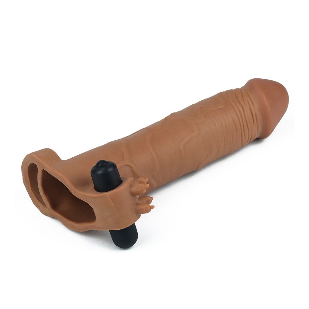 Extensie Penis Realista cu Vibratii Lovetoy adauga instant 7.5 cm lungime si 50% volum. Textura moale  si vibratiile integrate stimuleaza intens, oferind erectii impunatoare si o placere profunda, realista, pentru ambii parteneri.