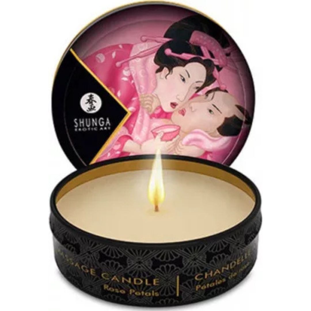 Lumanare pentru Masaj Shunga Trandafir – Ulei Natural cu Aroma Afrodisiaca