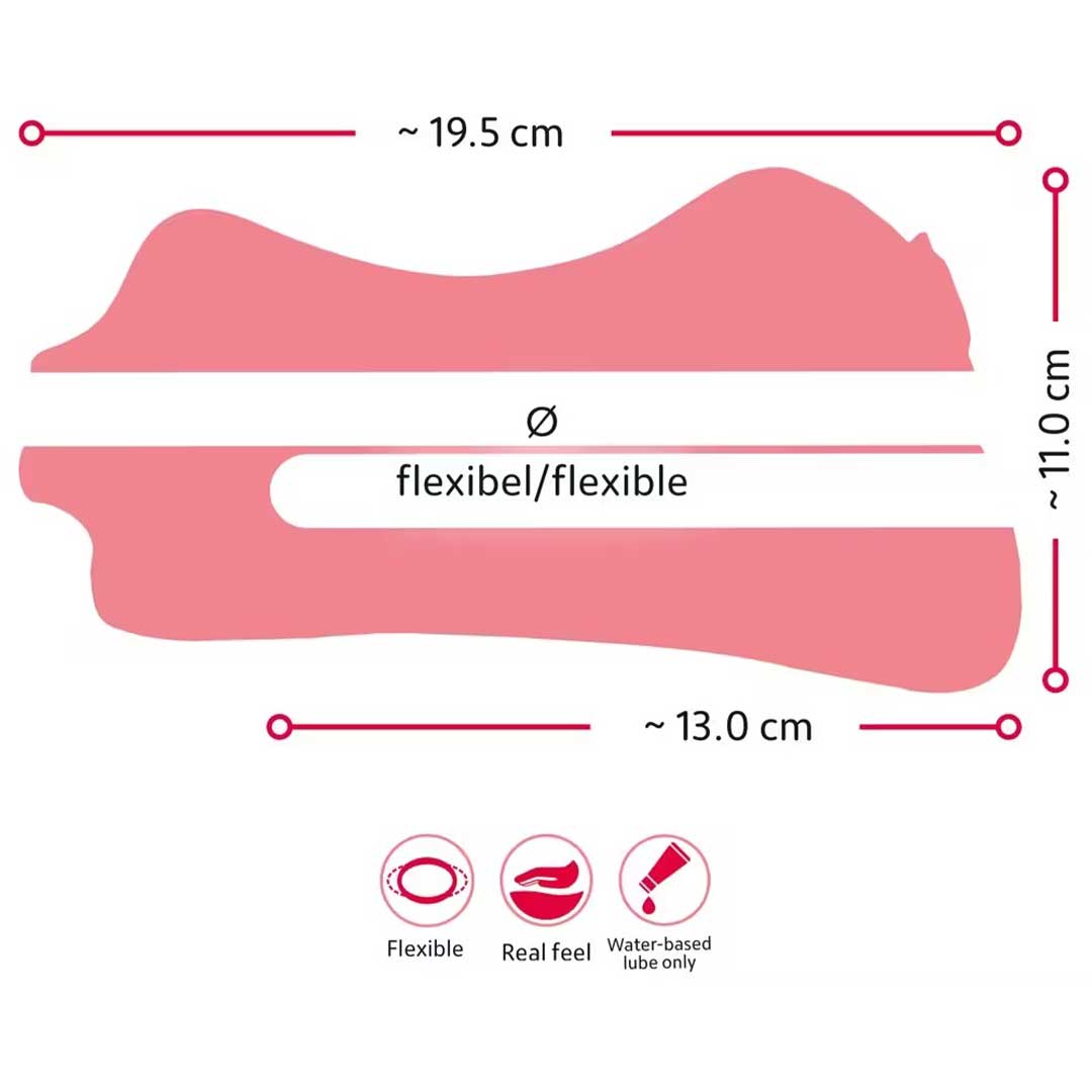 - Tunel Continuu XXL: Tunelul creat de Gura si Vagin este continuu, fiind potrivit pentru orice lungime de penis si facilitand curatarea usoara. Tunelul anal este de 13 cm adancime, strans, dar flexibil.