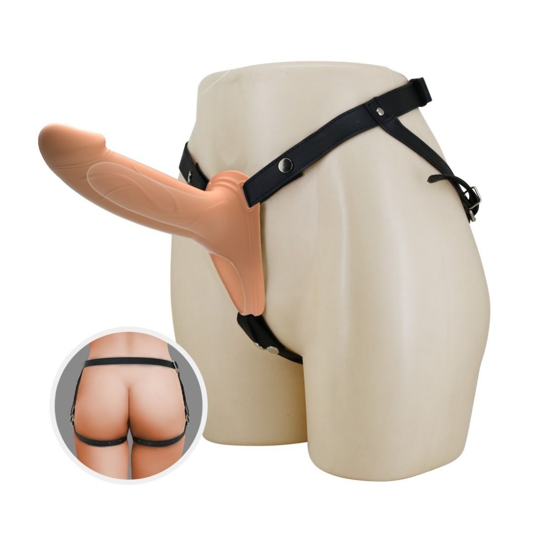 - Pregatirea: Incepe prin a fixa centura ajustabila in fata partenerului, subliniind prin gesturi sigure ca urmeaza o sesiune de penetrare mai lunga si mai ferma decat de obicei. Captuseala moale iti ofera confort, in timp ce dildo-ul hollow atrage atentia prin realism si rigiditate.