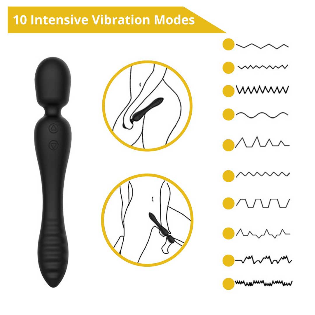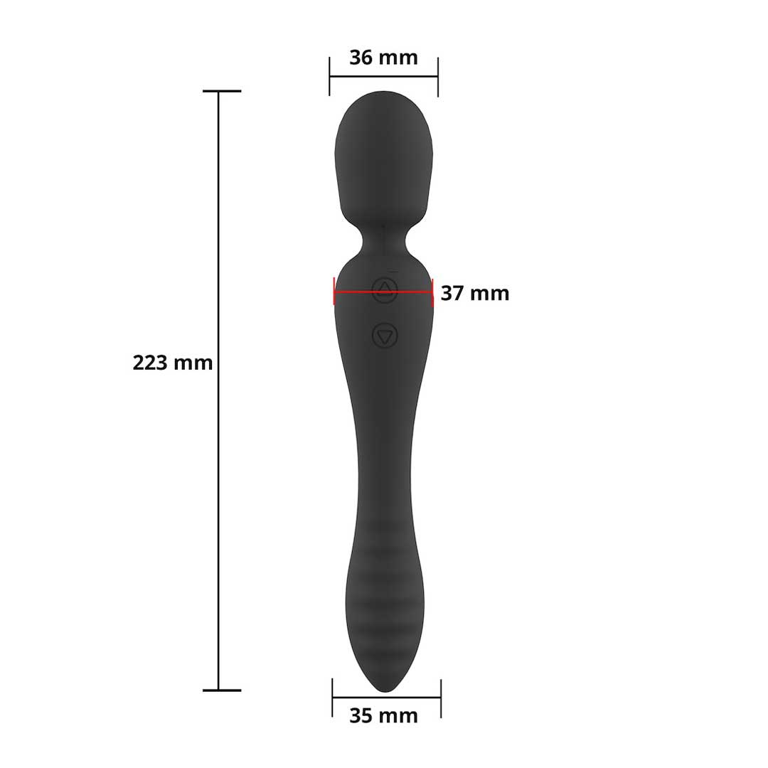 Acest masajor tip baghetă și vibrator pentru punctul G este o jucărie sexuală versatilă care oferă o stimulare externă și internă intensă. Capătul rotund al masajorului tip baghetă este ideal pentru stimulare externă și masaje relaxante, în timp ce celălalt capăt, cu un vârf special curbat, este perfect pentru stimularea punctului G.