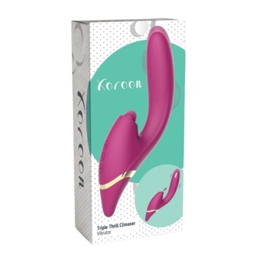 Acest Vibrator cu Stimulare Tripla Thrill Climaxer Fuchsia este un  dispozitiv avansat care stimuleaza simultan punctul G, clitorisul si zonele interne pentru a duce la atingerea unui orgasm intens fara efort. Tehnologia inovatoare a acestui Vibrator se bazeaza pe trei motoare independente care coordoneaza o placere tripla si profunda. Produsul este conceput special pentru a elimina necesitatea miscarii manuale, oferind o experienta de relaxare totala. Prin functia de penetrare automata si pulsatiile ritmice, acesta livreaza o satisfactie completa si constanta. Fiecare sesiune de utilizare devine un rasfat absolut datorita preciziei cu care sunt vizate toate punctele sensibile.
