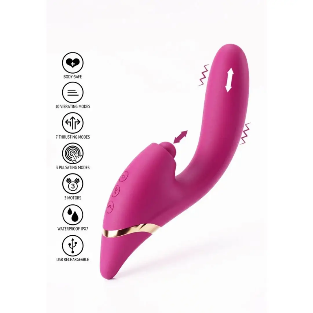 Bucura-te de un design fuchsia matasos si elegant, creat pentru confortul tau. Cele trei motoare ofera o stimulare tripla magica, transformand fiecare atingere intr-un rasfat de lux absolut.