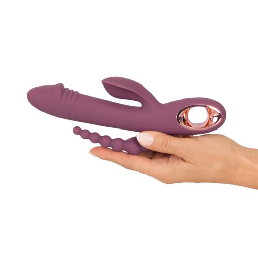 Vibratorul triplu de la You2Toys este alegerea perfecta pentru cei care vor sa duca placerea la nivelul urmator. Acest vibrator ofera stimulare simultana in trei zone erogene: vagin, clitoris si anus.